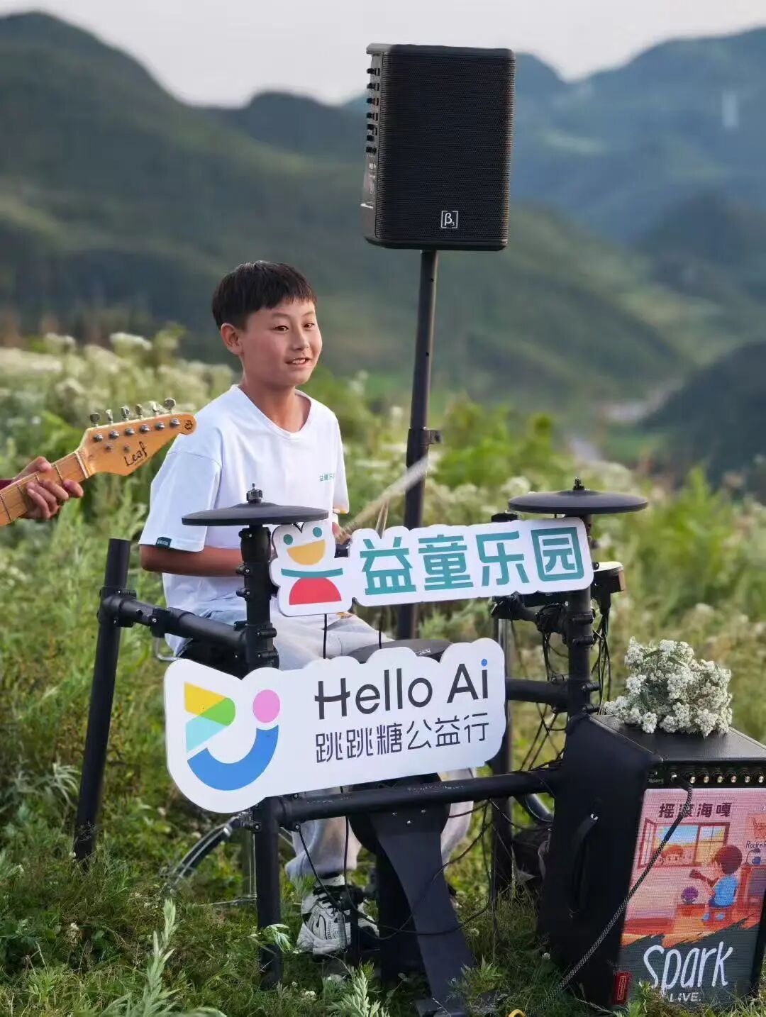2025年初秋,字节跳动跳跳糖公益员工发起的“HelloAI·跳跳糖公益行”,走进贵州省六盘水市钟山区大湾镇海嘎小学益童乐园站点。通过字节员工的AI科普、工具分享,孩子们创作出了一首歌曲,送给了陪伴了他们七年的顾亚老师。那天傍晚,孩子们和顾亚老师一起,在大片大片的草地上,唱了好久的歌。