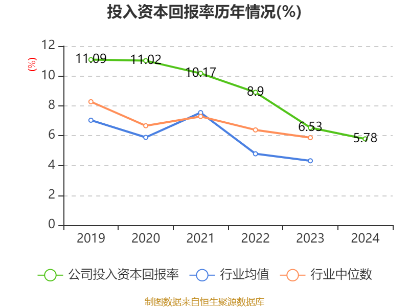 数据显示,2024年公司加权平均净资产收益率为7.56%宏盈国际,较上年同期下降1.48个百分点。公司2024年投入资本回报率为5.78%,较上年同期下降0.75个百分点。