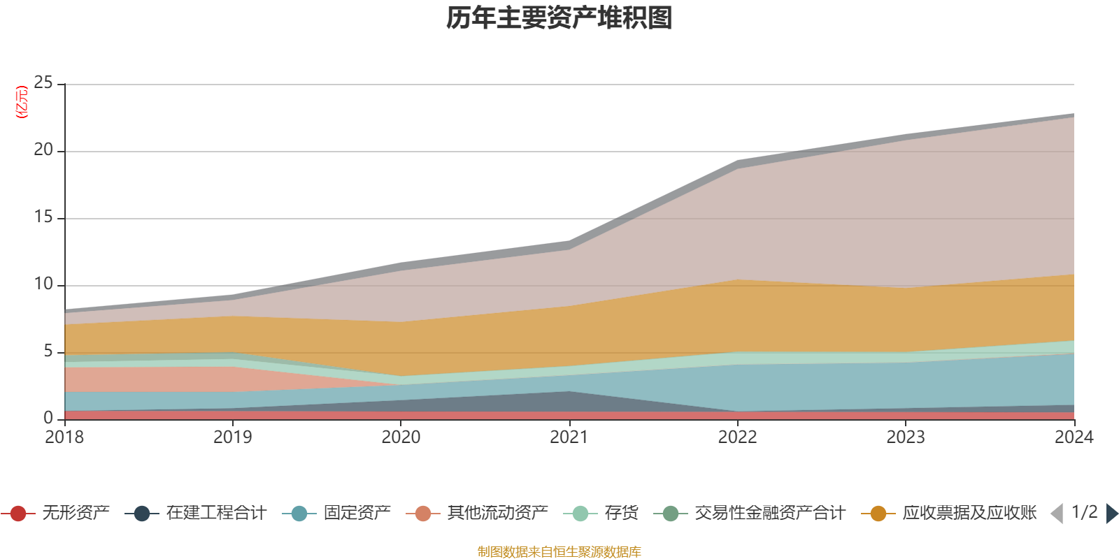 资产重大变化方面,截至2024年末,公司在建工程合计较上年末增加91.21%,占公司总资产比重上升1.08个百分点;应收票据及应收账款较上年末增加3.81%,占公司总资产比重下降0.73个百分点;固定资产较上年末增加11.71%,占公司总资产比重上升0.66个百分点;货币资金较上年末增加6.11%,占公司总资产比重下降0.57个百分点。
