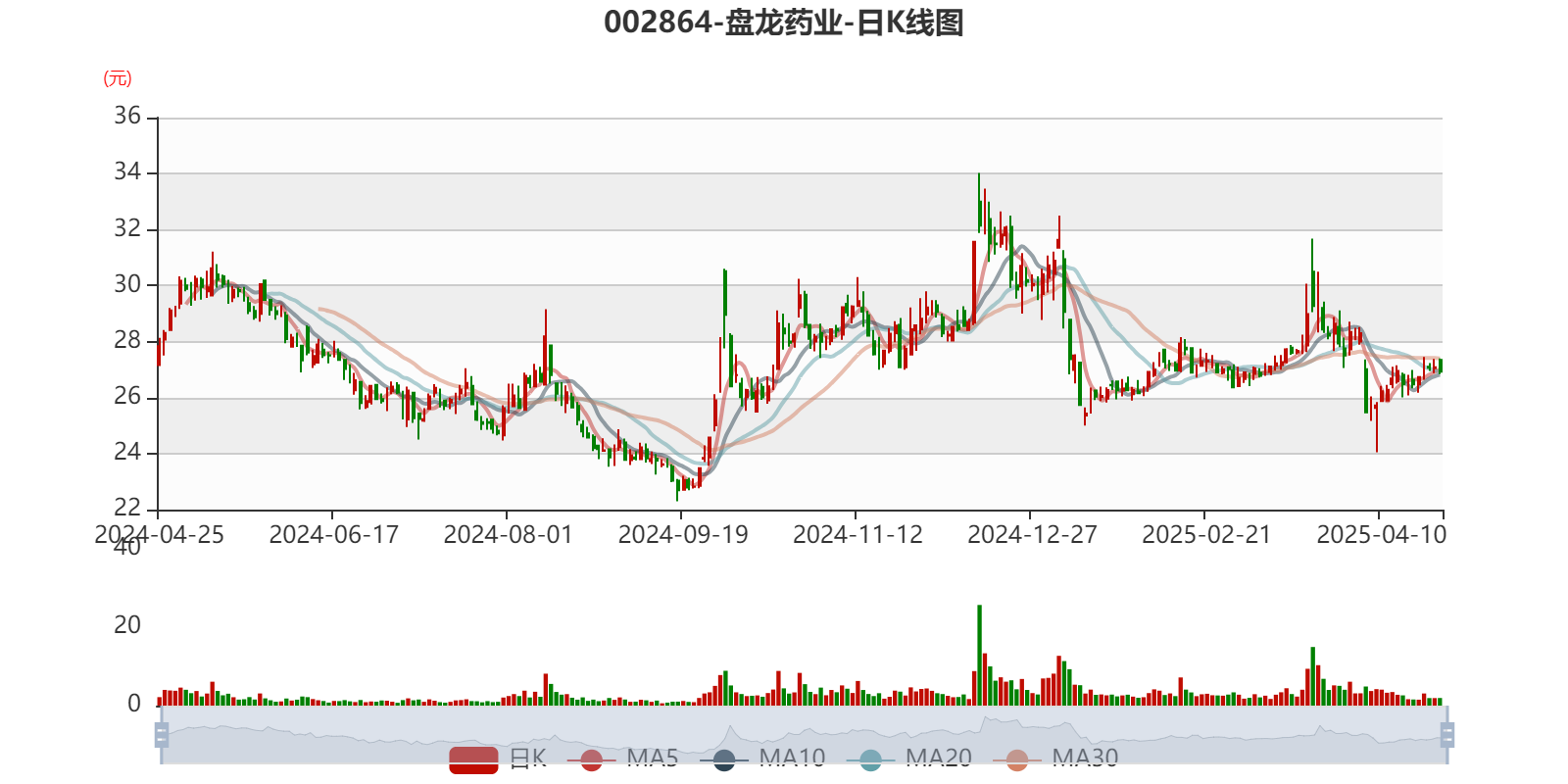 以4月24日收盘价计算,盘龙药业目前市盈率(TTM)约为23.93倍,市净率(LF)约1.76倍,市销率(TTM)约2.96倍。