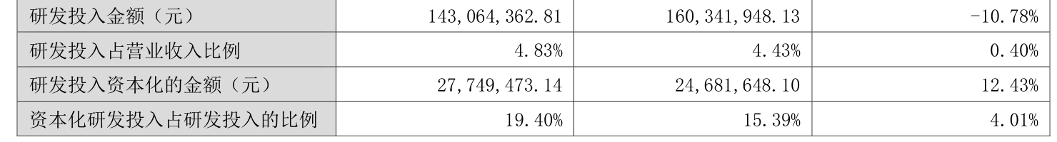 2024年全年,公司研发投入金额为1.43亿元兆富配资,同比下降10.78%;研发投入占营业收入比例为4.83%,相比上年同期上升0.4个百分点。此外,公司全年研发投入资本化率为19.4%。